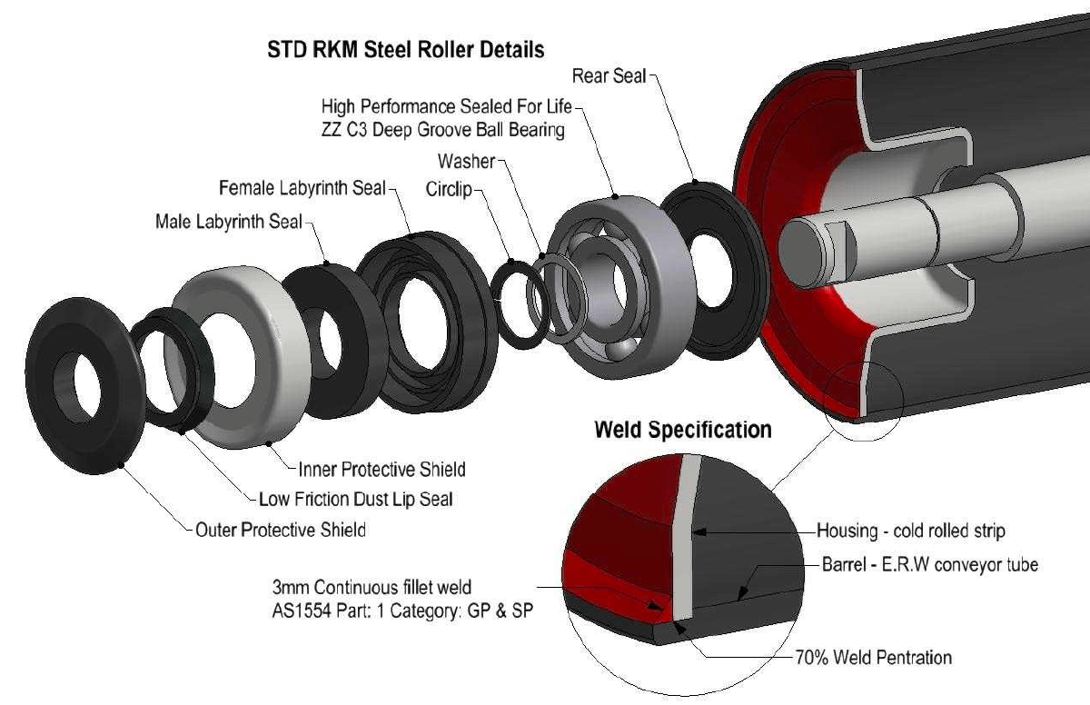 RKM-RS steel roller are suited for the harshest mining conditions. With its optimum sealing package and quality components, RKM-RS rollers is one of our best seller and supplied to various projects around the world.
