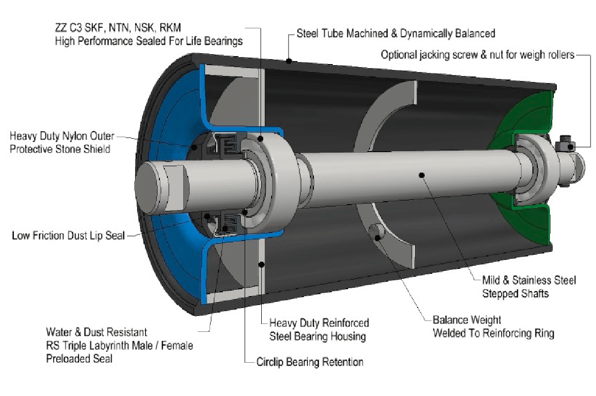 Weigh rollers are used in weighing section of the conveyor belt where minimal unbalanced weight is permitted