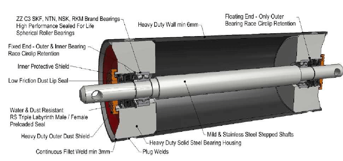 - Roller tubes machined to fit meet TIR and MIS requirements.