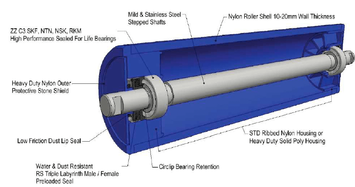 - Belt friendly as damaged roller would not damage the belt.