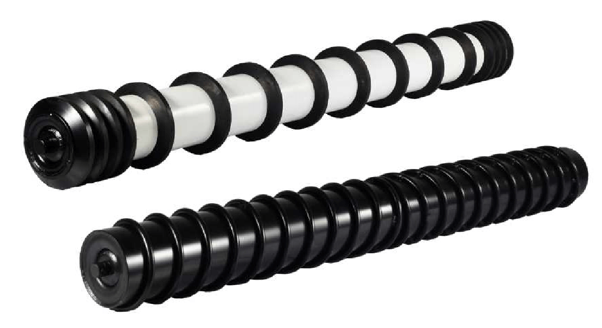 - Spaced rubber disc on roller are made from high performance rubber. Material build-up on centre of belt will be broken up by the rubber rings.